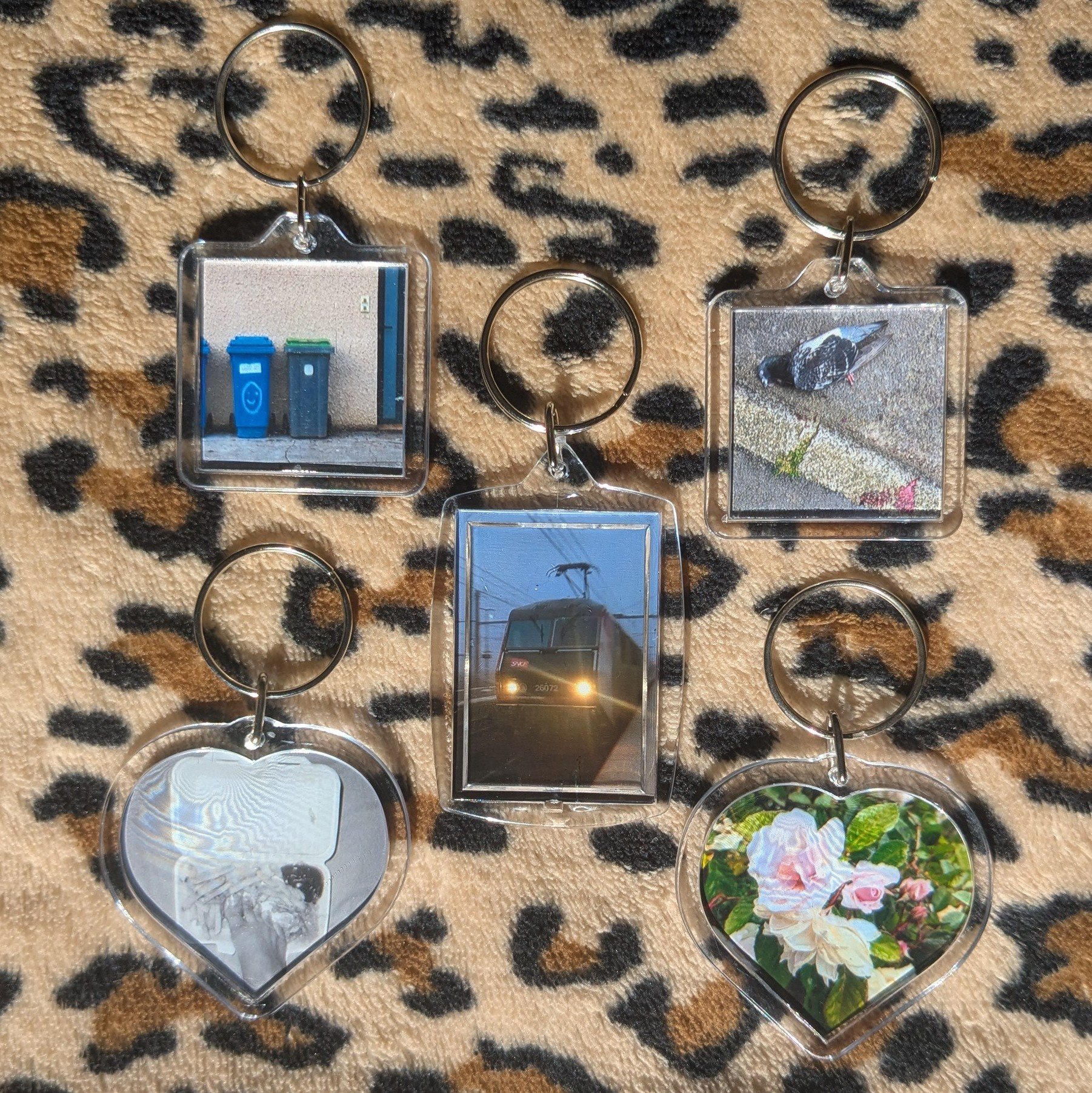 porte-clef poubelle (environ 4x4cm) ou porte-clef pigeon m0rT (environ 4x4cm) ou porte-clef train BB26000 (environ 4x5,5cm) ou porte-clef pied frites (environ 5x5cm) ou porte-clef roses (environ 5x5cm)
